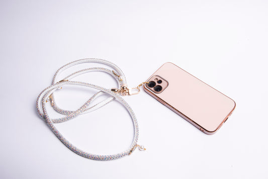 Cotton Crystal Crossbody Phone Lanyard - Silver