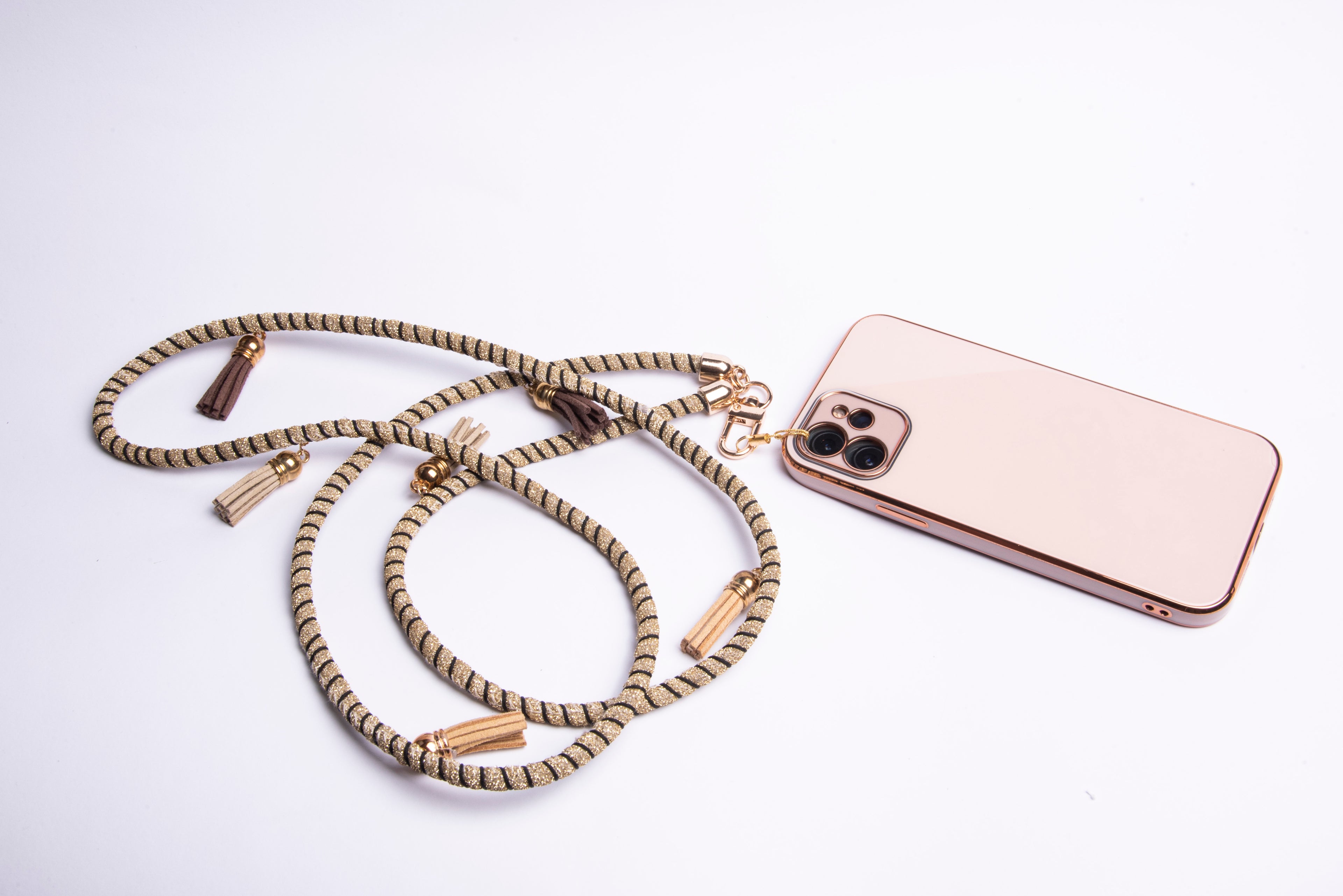 Metallic Corded Crosbody Phone Lanyard - Rose Gold