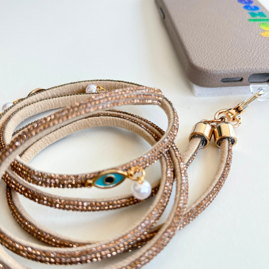 Cotton Crystal Crossbody Phone Lanyard - Champagne