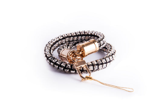 Chunky Crystal Phone Wristlet - Black and Silver