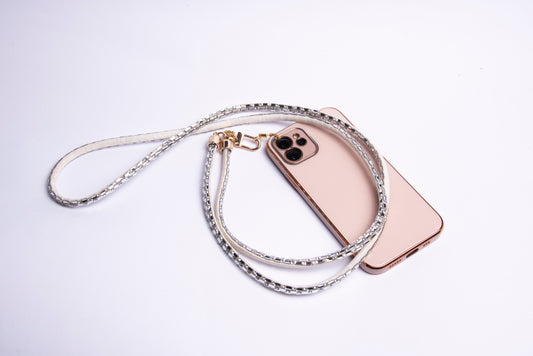 Cotton Crystal Crossbody Phone Lanyard - Silver
